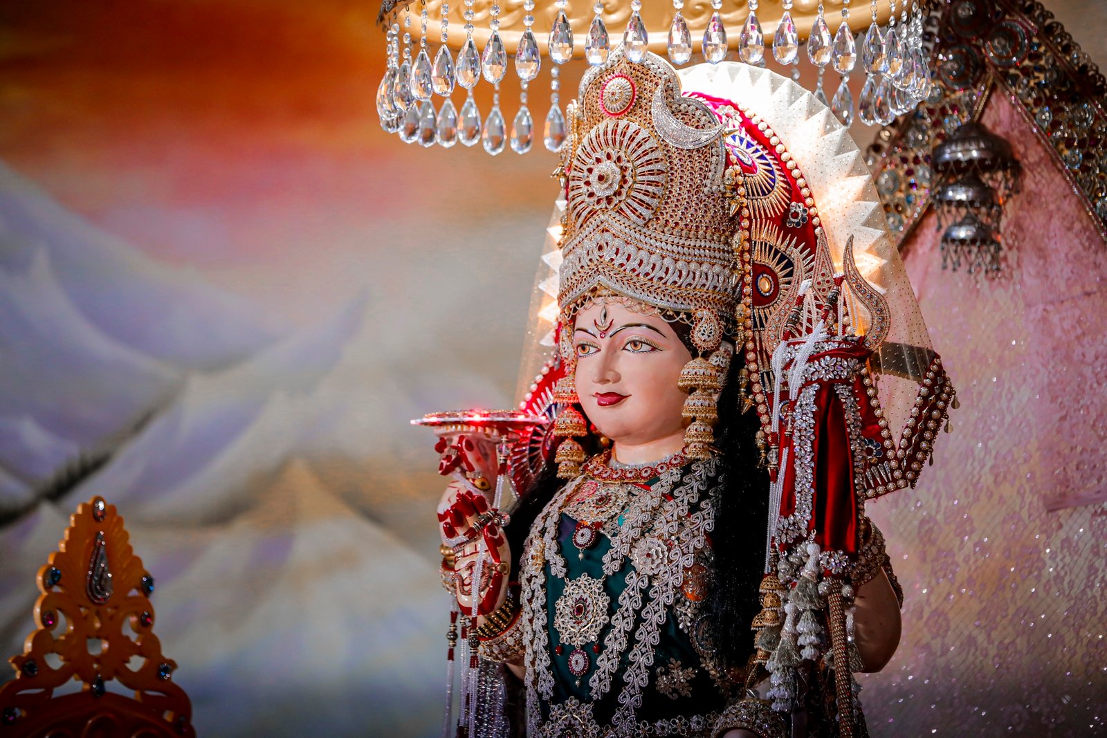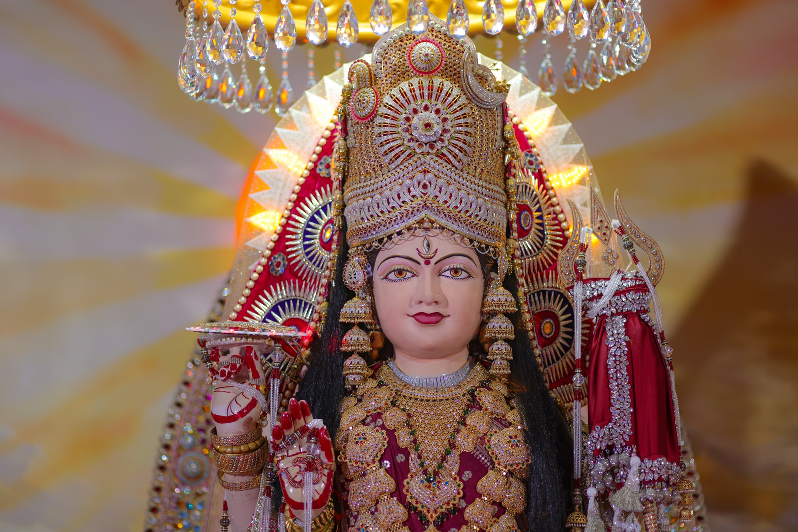 Mother VISHVAMBHARI is the creator of this endless Universe and entire world. Mother created Brahma, Vishnu and Mahesh (three Lords) and she is also the creator of minutest lifes to the gigantic animals; small mote to skyward ranges of Himalayas; small drop of water to seven seas; skies covering little cloud to stars, planets and nebulas. By arranging mysterious play of evolution, she has created special niche for humans and given the super most position to human beings in this world. So that he/she can attain the self-emancipation by singing lyrics of her Extra-terrestrial power. Mother VISHVAMBHARI is the mother of all Gods and Goddesses. She is omnipresent, almighty and omniscient.